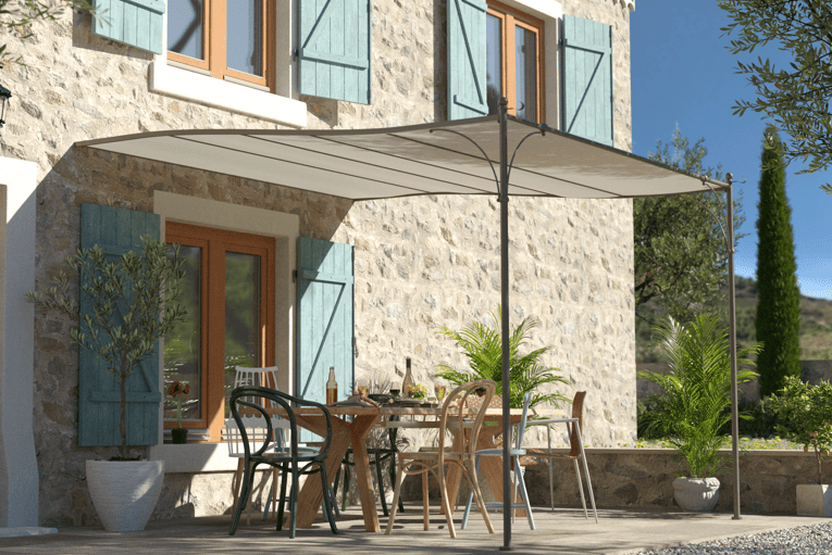 Fixées contre un mur, elles sont parfaites pour créer un abri de terrasse permanent, comme une pergola murale. Elles protègent efficacement votre baie vitrée du rayonnement solaire, tout en créant une zone d’ombrage pour vos moments de détente. Découvrez notre sélection ici : Pergolas adossées.