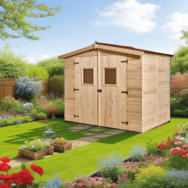 ED 2416.01 Abri avec plancher 5M2 en panneaux 16 mm fabriqué en épicéa massif