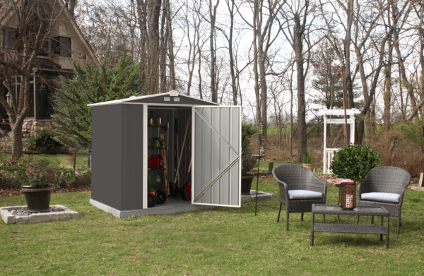 Dimensions extérieures: largeur 1,772 x profondeur 1,575 x hauteur faîtage 1,829 m