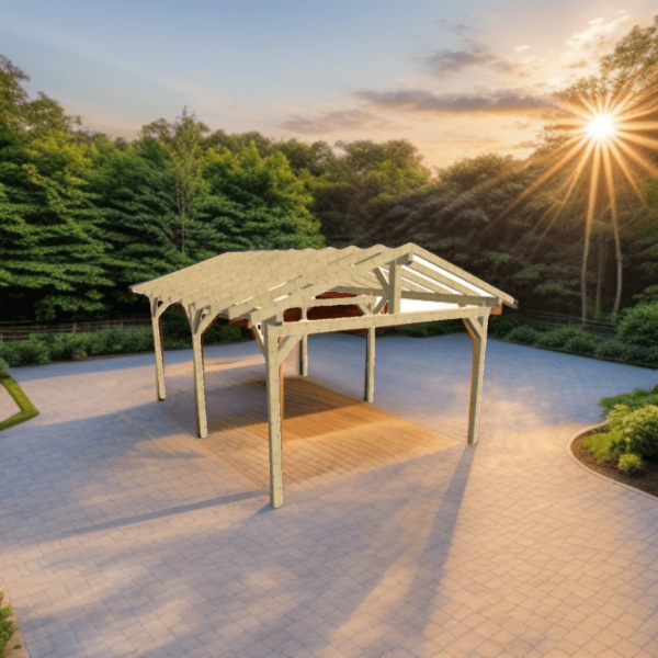 KA 4563 ST Carport bois 22 M2 double pente (pente 19°) sans couverture avec préparation pour couverture tuiles