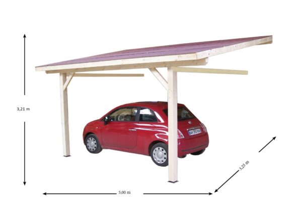 AM 3350 BM Carport bois adossé 10 M2 monopente (pente 12°) couverture bardeaux bitumés fabriqué en sapin du Nord contrecollé