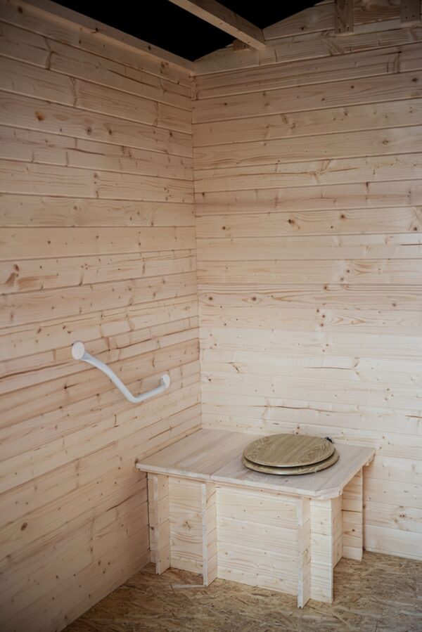 AL2121.01WC Toilette sèche PMR Abri en madriers 20 mm avec plancher fabriqué en sapin massif