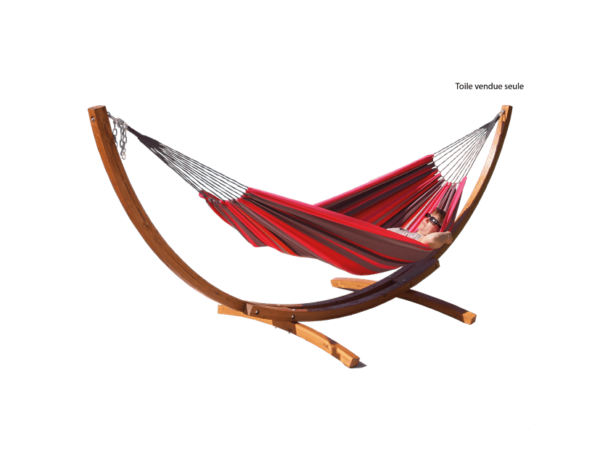 Le motif rayé rouge apporte une touche chaleureuse et vibrante à ce hamac double, évoquant des paysages tropicaux et des ambiances estivales. Il s’intègre parfaitement dans tout type de décoration extérieure ou intérieure, ajoutant une note d’élégance et de couleur à votre espace. Que ce soit pour compléter une terrasse moderne ou un jardin bucolique, ce hamac saura séduire par son esthétique raffinée.