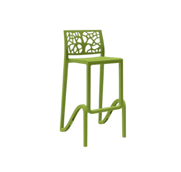 Avec sa hauteur d’assise de 75 cm, sa structure en polypropylène et sa couleur vert mousse, il répond aussi bien aux exigences des extérieurs modernes comme des ambiances naturelles.