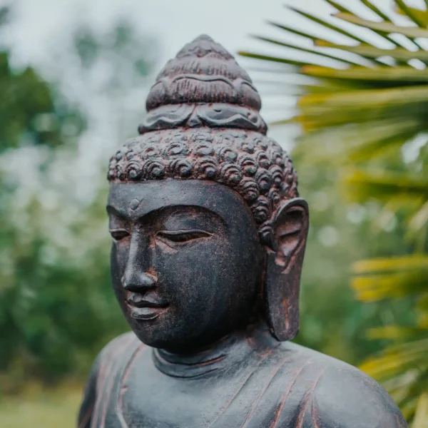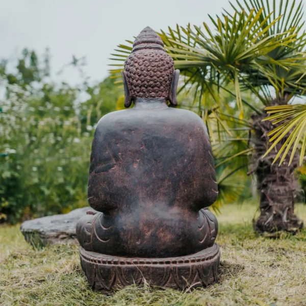 Ce qui distingue particulièrement cette statue Bouddha assis en pierre, c’est son design inspiré de l’art antique. Les finitions patinées et les détails finement sculptés confèrent à la statue un aspect ancien, comme si elle avait traversé les siècles pour parvenir jusqu’à vous. Cette esthétique antique se marie parfaitement avec une décoration traditionnelle ou même contemporaine, ajoutant une touche d’histoire et de spiritualité à votre espace. La patine naturelle de la pierre, acquise au fil du temps, renforce l’authenticité de la pièce et lui donne une allure intemporelle.