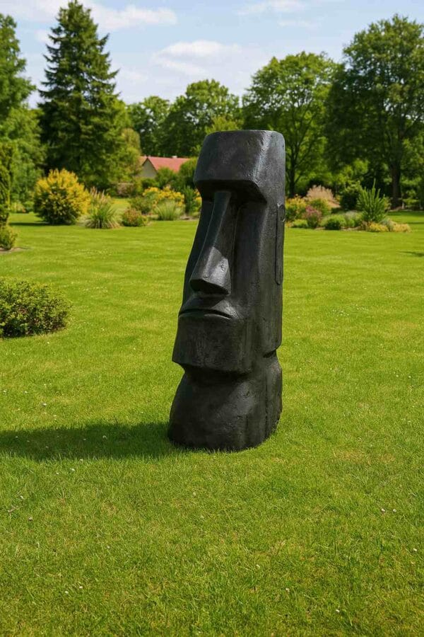 Statue MOAI noire 180 cm – L'élégance monumentale au service de vos extérieurs
