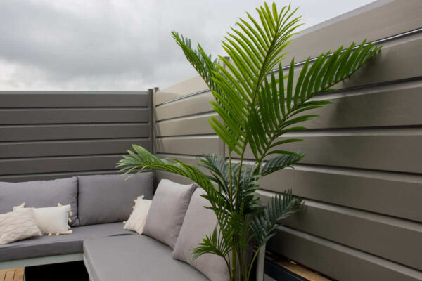 Cette clôture jardin moderne persienne offre également différentes options de remplissage et de ventilation, permettant de jouer avec les espaces entre les lames pour une meilleure gestion de la lumière et de l’air. En outre, le PVC Quartz présente l’avantage d’être une matière résistante et flexible, offrant une grande liberté dans la configuration de votre clôture. Que vous souhaitiez un rendu plus opaque pour maximiser l’intimité ou, au contraire, une disposition ajourée pour profiter de la lumière naturelle, la clôture CLOSEA peut être ajustée à vos envies.