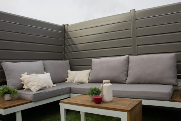 Cette clôture jardin moderne est également traitée pour résister aux rayons UV, ce qui garantit que la couleur Quartz ne se décolore pas même après plusieurs années d’exposition au soleil. Cette résistance exceptionnelle aux UV permet à la clôture de conserver son éclat d’origine sur le long terme, sans avoir besoin de traitements ou de repeintures régulières.