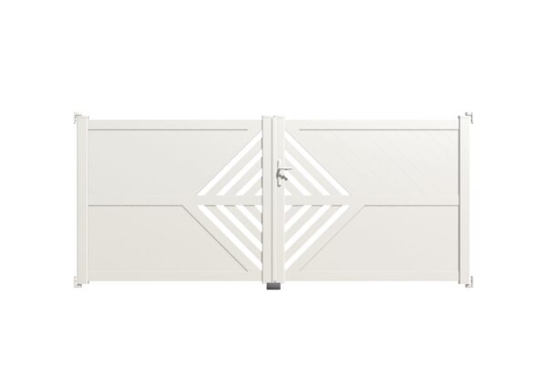 Optez pour la quintessence du raffinement et de la performance avec ce portail battant en PVC blanc. Transformez votre entrée avec une élégance intemporelle tout en sécurisant votre domicile. Appréciez le confort absolu grâce à son mécanisme battant fluide et silencieux. Sa structure en PVC haute qualité garantit une résistance exceptionnelle aux intempéries, aux UV, à la décoloration et aux chocs.