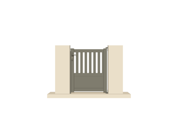 Accueil > Tous nos produits > Aménagement extérieur > Portails & portillons > Portillon battant aluminium ajouré – Bordeaux – Gris Quartz 7039 – L.105 x H.120 cm