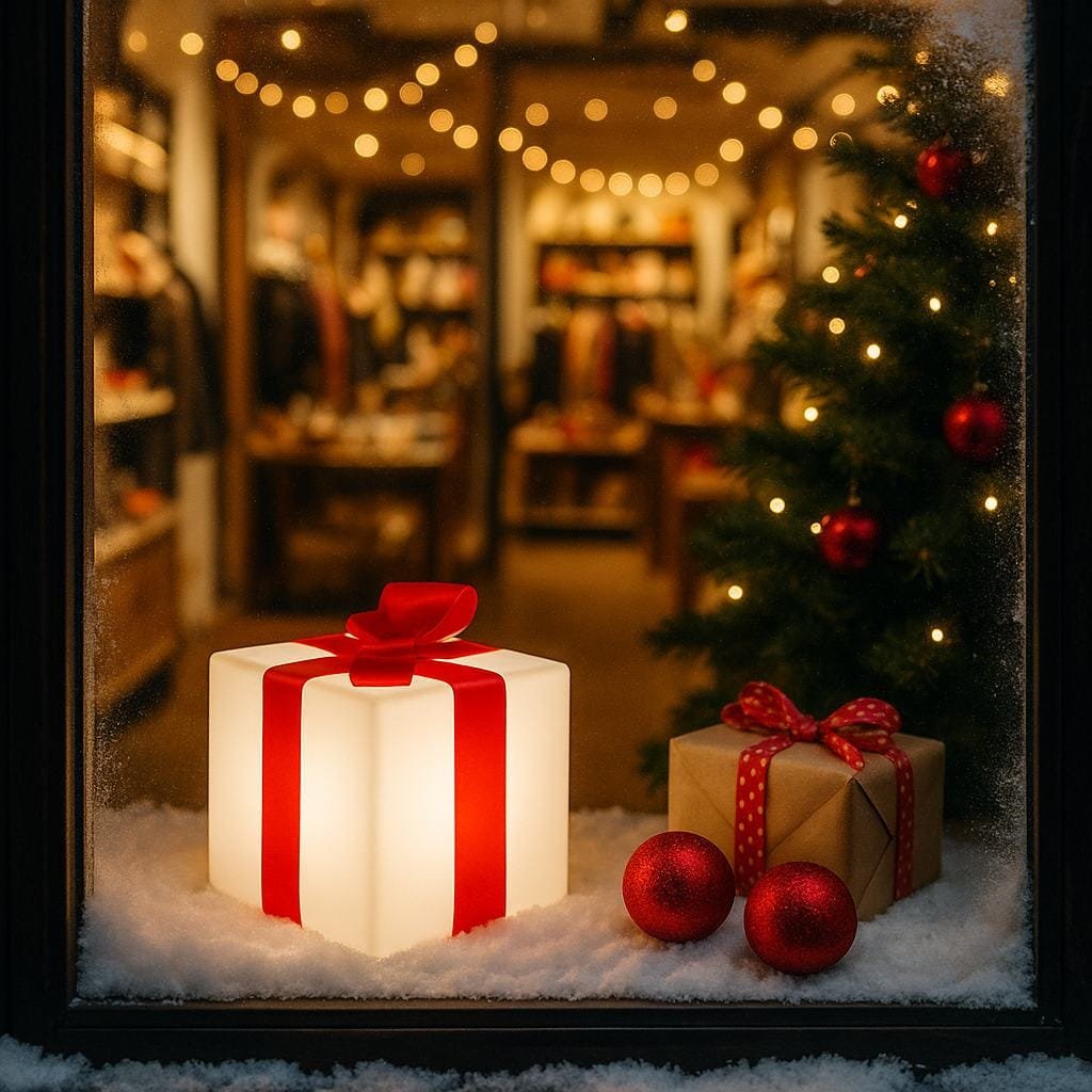 Avec sa forme carrée et sa couleur blanche, ce cube lumineux façon paquet cadeau s’intègre partout : entrée, salon, sous le sapin, vitrine de boutique ou comptoir d’accueil. Le ruban adhésif rouge inclus apporte la touche festive qui évoque instantanément la magie de Noël. Fabriqué en polyéthylène, le cadeau de Noël lumineux 20 cm est simple à entretenir et pensé pour vous accompagner saison après saison. Son format 20 x 20 cm est idéal pour décorer un coin de table, un rebord de fenêtre, une marche d’escalier ou compléter votre mise en scène que ce soit à domicile ou dans votre vitrine à côté d’une guirlande lumineuse, d’une lanterne LED ou d’une étoile lumineuse.