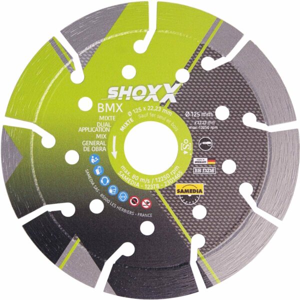 Disque diamant, disque 125, shoxx bmx, disque mixte, disque universel, disque D125, 125mm, 125 mm, segment 13 mm, osa, norme EN 13236, meuleuse d’angle