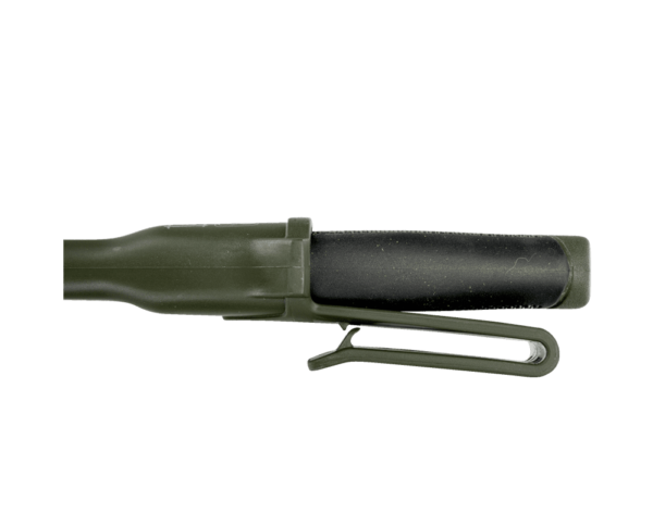 Couteau fourni avec un étui plastique pour le porter à la ceinture, scie avec dragonne en cuir